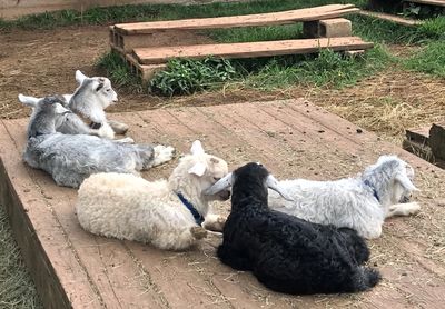 A good bath for a goat with skin problems or dirty fleece is with warm water and Dawn dish soap. We allow our water to warm up in a long hose in summer then use a leaf blower to speed the drying process. In fall or winter, we choose a warm day and use a blow dryer to keep the goat comfortable and warm as the fleece dries. You will be surprised how some mats will look worse while the goat is wet but will practically fall out as the goat dries. Follow the bath and drying process with proper skin care appropriate for your goat's skin condition, such as a dusting of preventive flea, tick and lice powders, an application of Ivermectin pour-on.